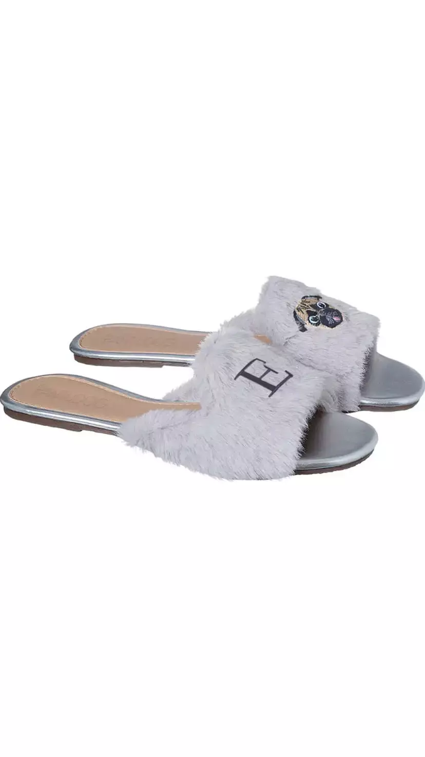 Delicada e marcante, a mule Pantudog dourada combina o brilho metálico suave com o conforto do forro em pelúcia branca. O design minimalista traz a clássica palmilha bege com o logotipo Pantudog em dourado discreto, e a tira superior em material dourado metalizado, com toque macio e acabamento refinado. Um dos pés exibe bordado com inicial personalizada, enquanto o outro traz bordado pet em alto relevo, símbolo da identidade afetiva e divertida da marca. Ideal para quem ama conforto, estilo e exclusividade.